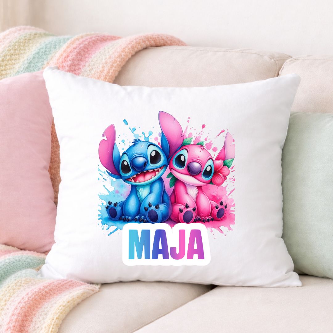 Wyjątkowa poduszka dziecięca z uwielbianym motywem STITCH, stworzona specjalnie z myślą o personalizacji ✨ Dodaj dowolne imię, a my przygotujemy poduszkę idealną dla Twojego dziecka – do pokoju, na łóżko lub jako wyjątkowy prezent
